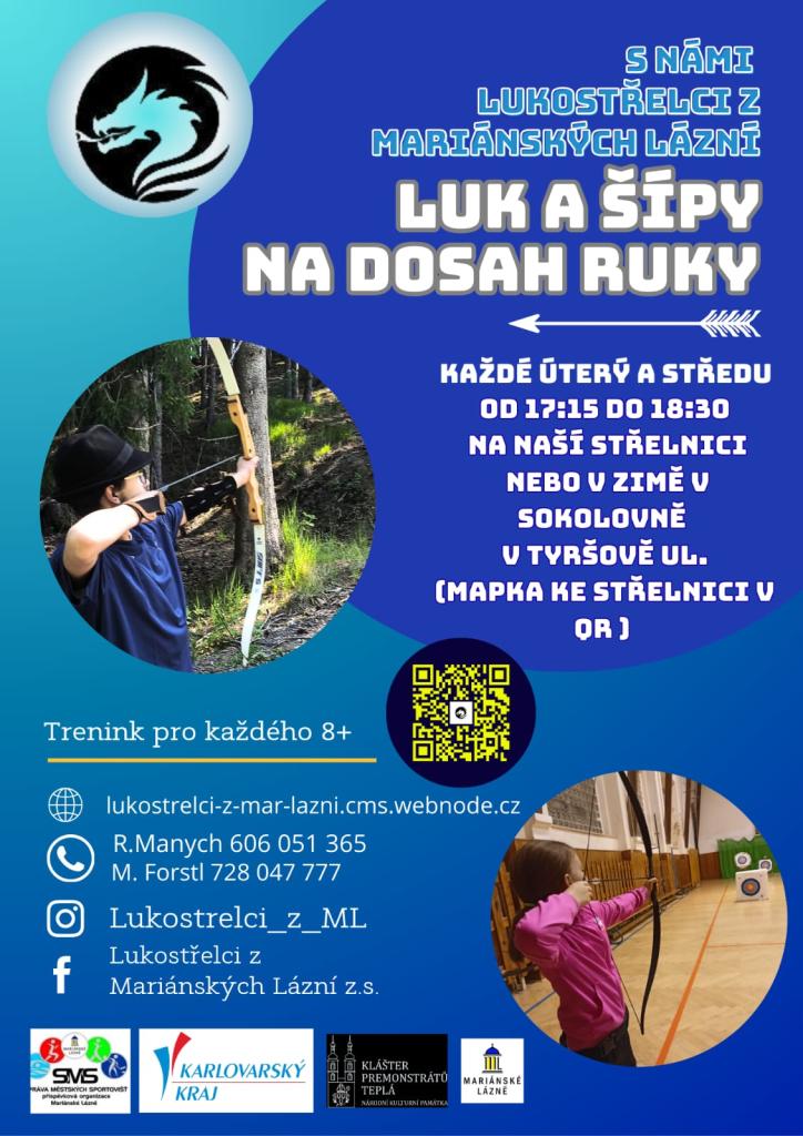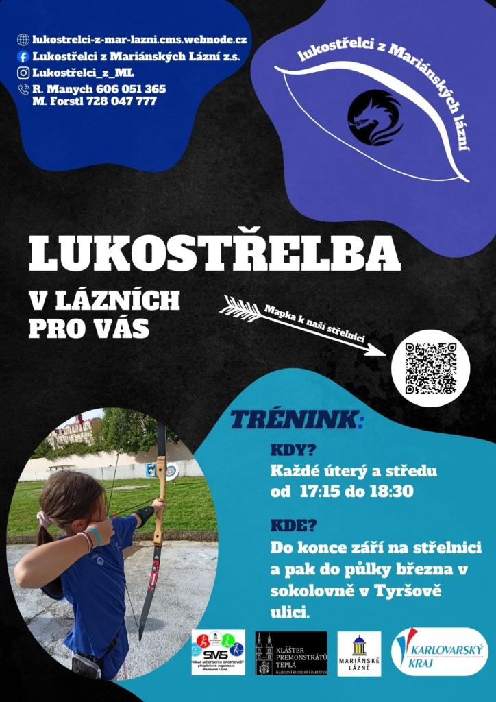Lukostřelci z Mariánských Lázní zvou všechny zájemce na pravidelné tréninky lukostřelby. Ty se konají každé úterý a středu od 17:15 do 18:30 na naší střelnici a v zimních měsících v sokolovně v Tyršově ulici. Vstup je otevřen pro všechny, kdo mají zájem o tento sport, a to od věku 8 let. Přijďte si vyzkoušet lukostřelbu a zažijte zábavu a přátelskou atmosféru.