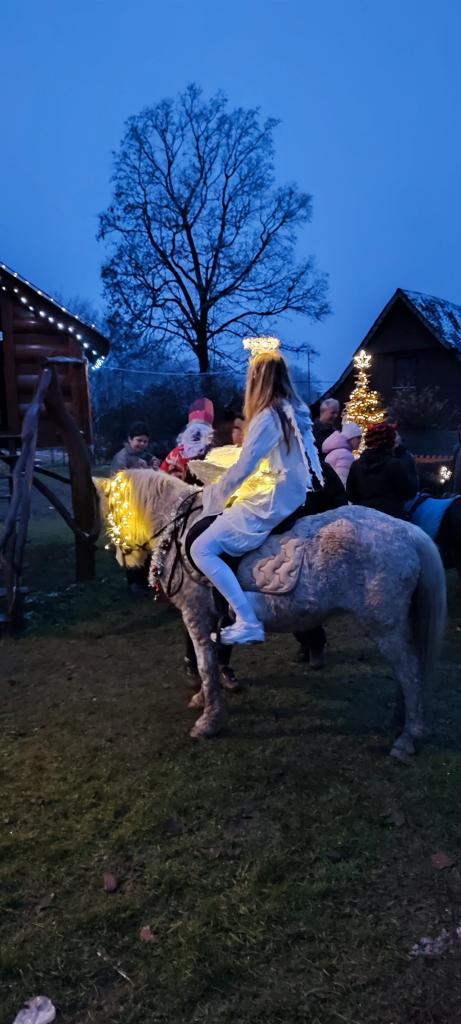 5.12.2025 - Dnes si děti užily čertíky, Mikuláše a anděla, kteří přijeli do naší vsi na ponících. Je to hezká novodobá akce. Moc děkujeme paní Markové a její družině.
