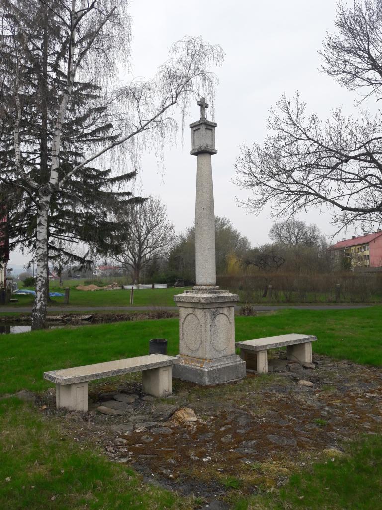 Z původního kamenného sloupu se podařilo zachránit pár fragmentů, zbytek byl vytesán kameníky dle dobových fotografií.